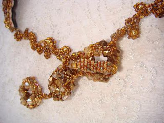 My first big project on bead embroidery...took longer than expected eventually I managed to finish it. I used a variety of seed beads, glass and fresh water pearls, crystals, bugles, glass crackle beads, Nymo thread, beading needle and felt. I mainly used back stitch to saw all the beads and daisy chain stitch to make it longer.